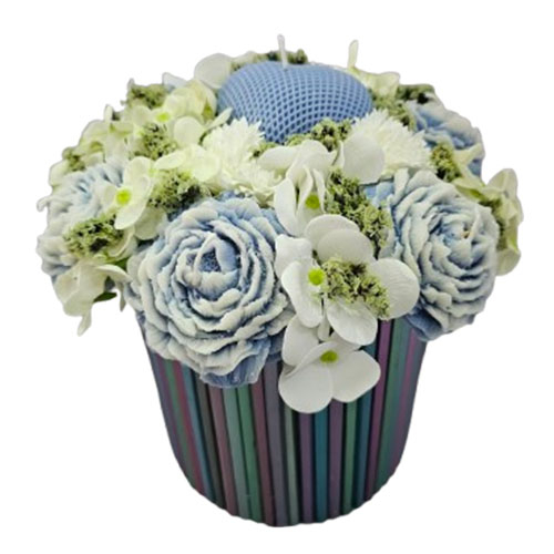 Aranjament floral din ceara de soia in suport creioane metalizate este o piesa decorativa deosebita, ce imbina delicatetea florilor naturale cu un design modern si elegant. Florile din ceara de soia, realizate manual cu atentie la detalii, confera acestui aranjament un aspect durabil, dar si rafinat, avand un finish delicat ce adauga un strop de puritate si eleganta.