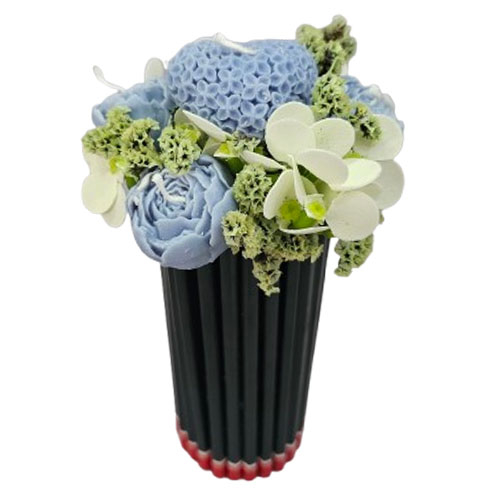 Aranjament floral in suport de creioane negre este o decoratiune eleganta si moderna, care imbina rafinamentul florilor lucrate manual cu un design contemporan. Florile din ceara de soia sunt atent modelate pentru a reda frumusetea naturala si delicatetea petalelor, oferind un aspect sofisticat si durabil.