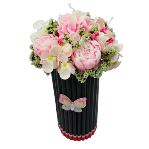 Aranjament flori roz in suport de creioane este o decoratiune delicată și plină de culoare, care adaugă un strop de prospețime și eleganță oricărui spațiu. Florile roz sunt alese cu atenție și aranjate cu grijă pentru a crea un efect vizual rafinat, iar nuanțele delicate ale acestora aduc o notă de feminitate și luminozitate. Suportul de creioane adaugă un element jucăuș și original, transformând această piesă decorativă într-o alegere creativă și versatilă.