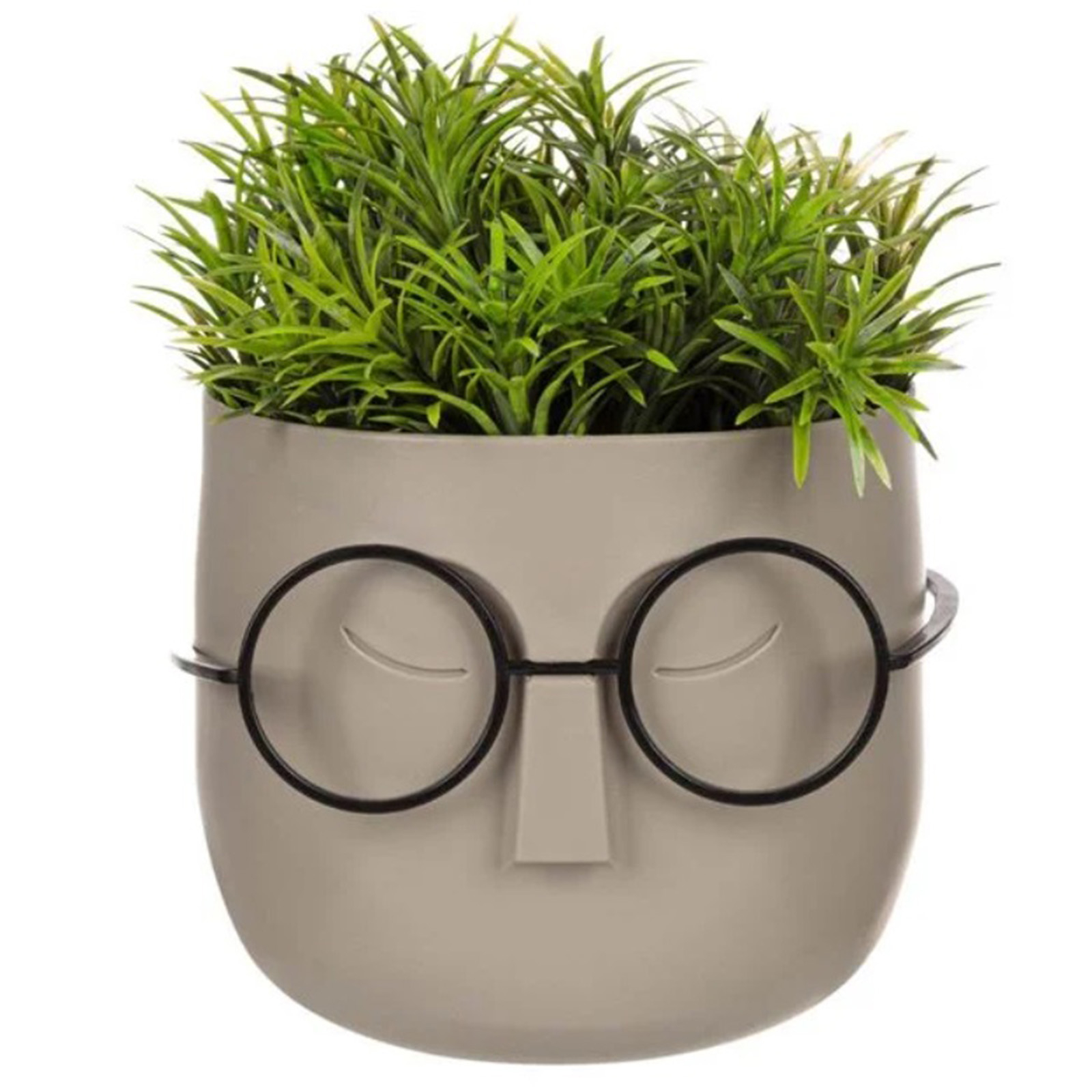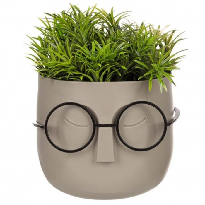 Ghiveci cu ochelari si planta artificiala verde este o optiune perfecta pentru cei care apreciaza decorurile neobisnuite si pline de personalitate. Adauga un aer relaxat si fun spatiului tau, fiind in acelasi timp usor de intretinut si de integrat in orice stil de amenajare.